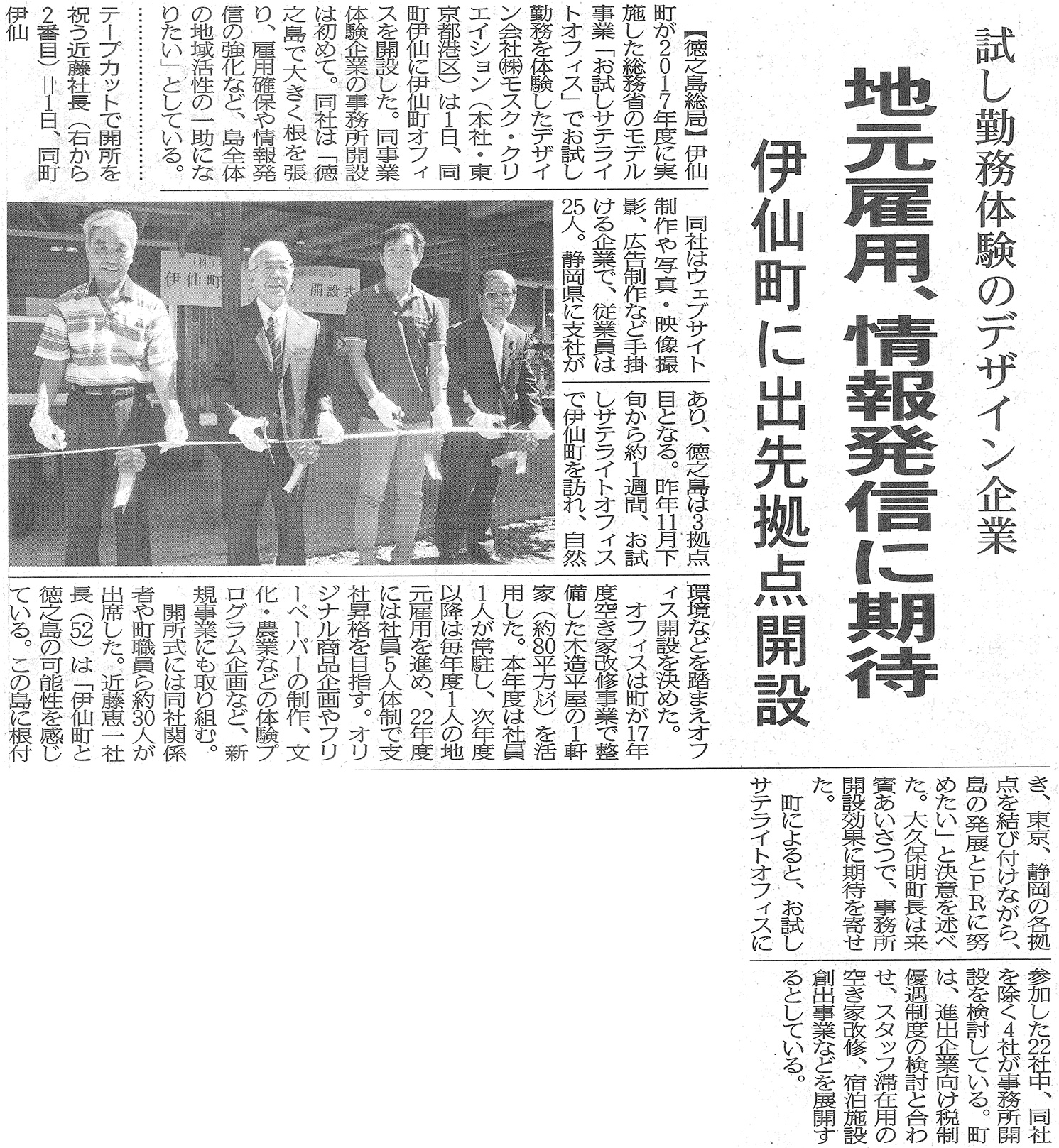 先日の徳之島ベース 伊仙町オフィス開設式の様子が、地元の南海日日新聞と奄美新聞に掲載されました。また、Yahoo!ニュースにも取り上げていただきました。