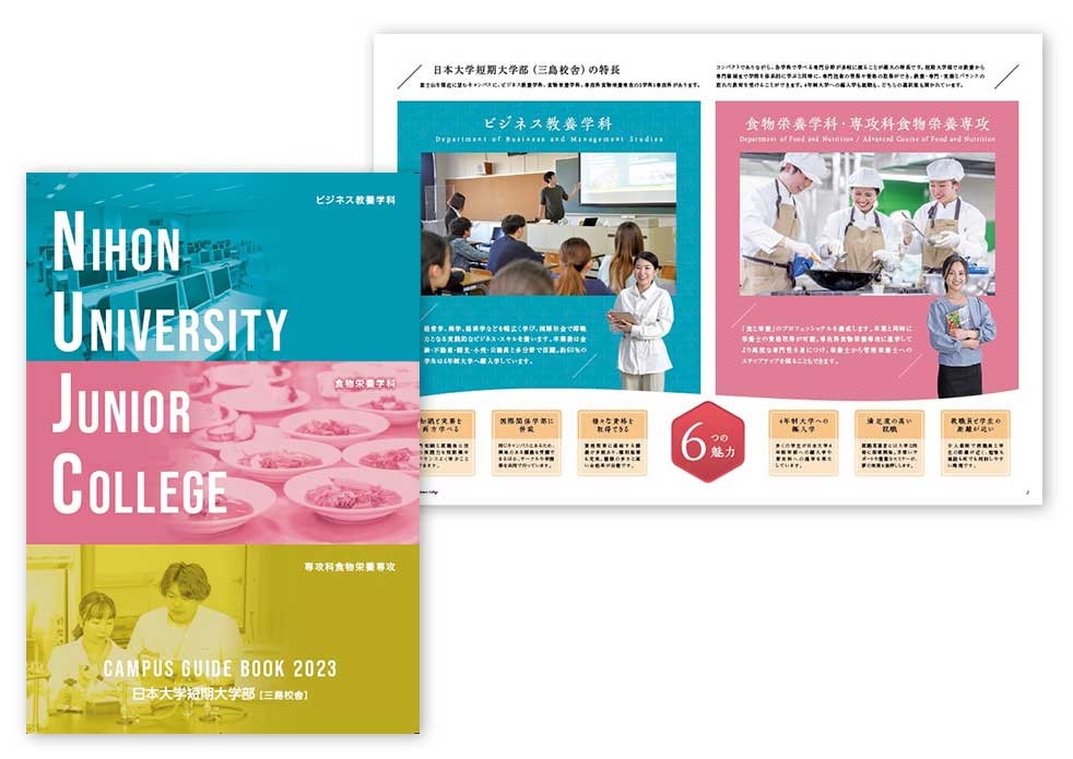 - 国際関係学部 A4 カラー78ページ/短期大学部 A4 カラー32ページ/Webサイト PC・スマホに適応するレスポンシブ対応