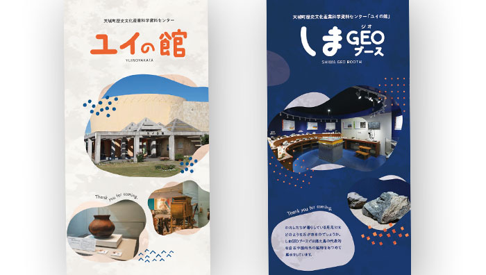 天城町歴史文化産業科学資料センター「ユイの館」の施設案内と、館内にある「しまGEOブース」の紹介リーフレットを制作しました。