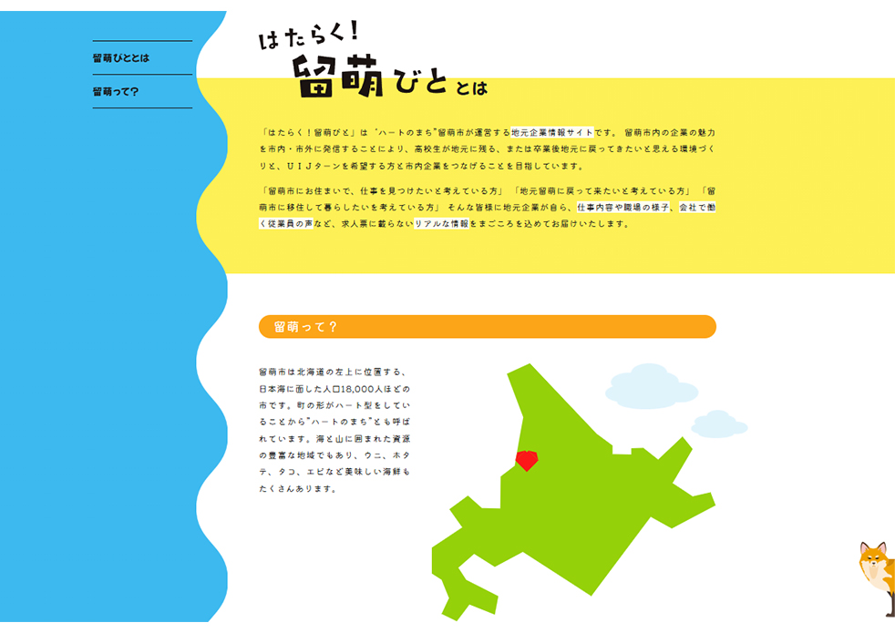 留萌市の地元企業情報サイト「はたらく!留萌びと」。弊社はサイトデザイン・構築から取材・撮影・動画編集・運営までを一貫して担当しました。